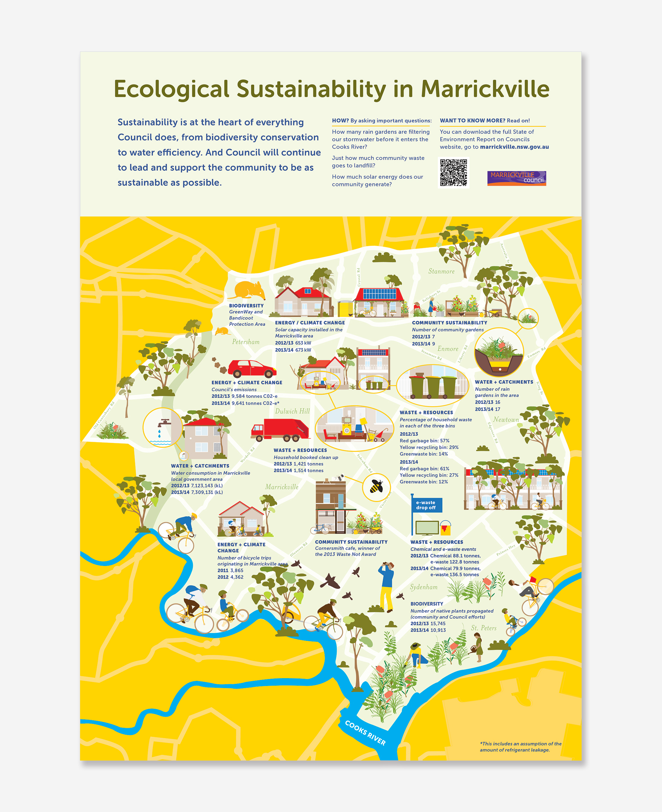 Infographic to inform awareness around the existing sustainability initiatives in Marrickville Council.